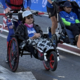 Sillas especiales para maratones y otros eventos, que permiten a los chicos y chicas participar en carreras acompañados por corredores solidarios.